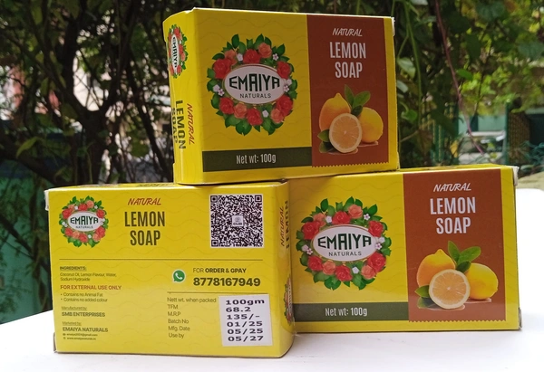 Experience the invigorating essence of nature with Lemon Soap by Emaiya Naturals. Crafted with care, this luxurious soap is designed to awaken your senses with its zesty lemon aroma while gently cleansing and nourishing your skin. Perfect for those who value natural skincare and crave a refreshing start to their day.