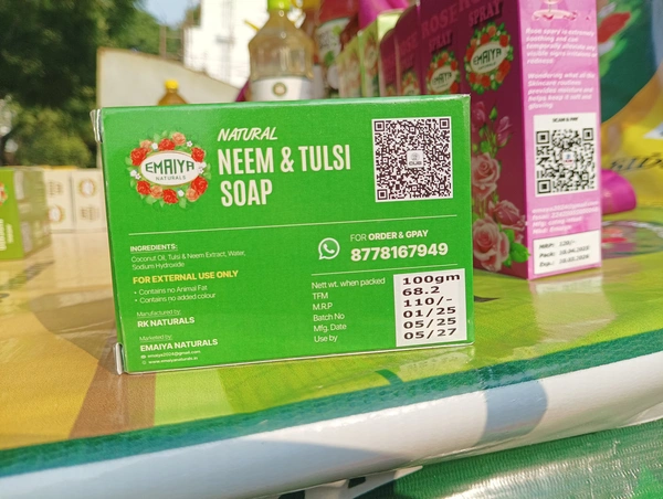 Elevate your daily skincare routine with the power of nature. Let the Neem and Tulasi Soap pamper your skin while embracing the purity of Emaiya Naturals.